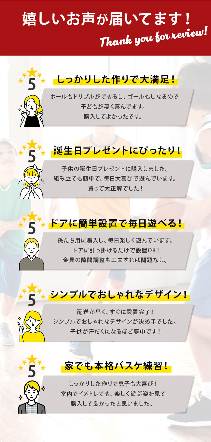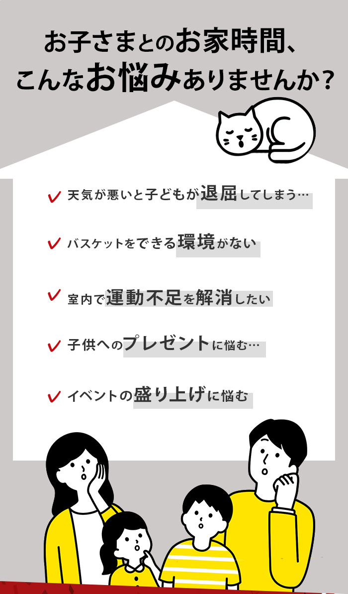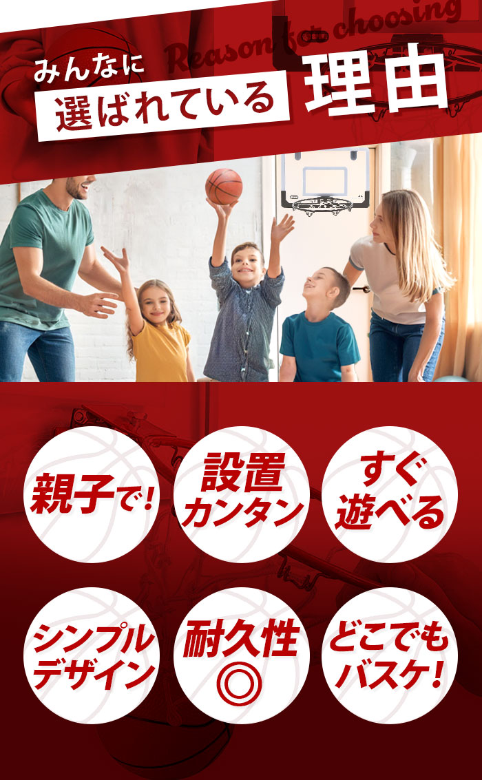| 商品説明 | ・お部屋のドアに引っ掛けて使える!バスケットゴールセットが登場。 ・付属のドライバーやレンチを使って、簡単組み立て!いつでもどこでもバスケットボールの練習ができちゃう♪ ・雨が降って屋外で遊べない日も、家族や友人と一緒に室内で楽しめるのが嬉しい◎ ・ゴールを決めれば、気分もスッキリ!ストレス解消にぴったりなアイテム。 ・ミニサイズのバスケットボールや空気入れも付属。 |