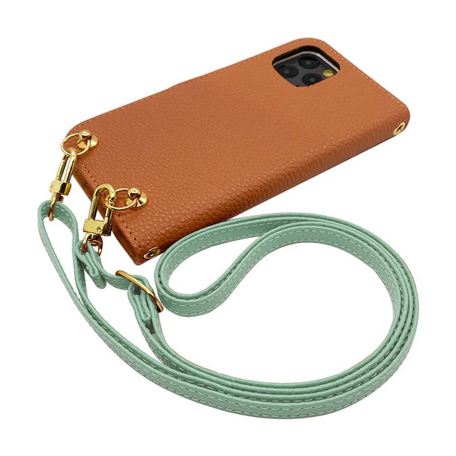 Galaxy S21 5G SC-51B SCG09 スマホショルダー(手帳アプリコット×ストラップ:アイスグリーン)カバー 手帳 くすみカラー