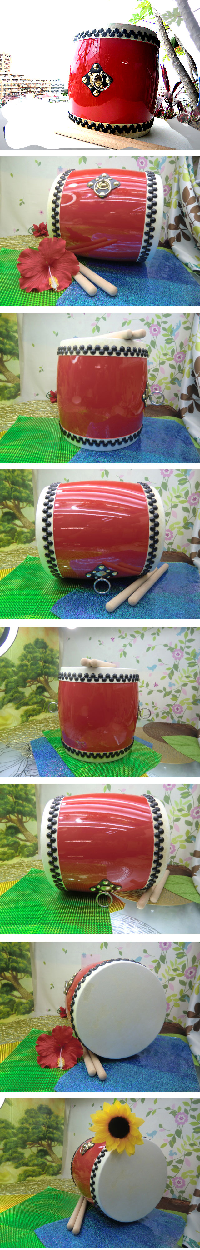 | ♪ | (送料無料) 消費税不要、同梱OKです+++♥♥♥ ![]() +++ Rタイプ エイサー用大太鼓30cm +++ 沖縄エイサーの演舞で使用する大太鼓です。 見た目とは逆に意外と軽めですが、大きいので首や肩から紐でかけるのが一般的で負担が有りません!! デザインはシンプルの中にカッコよさが引き立つ仕上がり。 音の良さもモチロン抜群!! 色合いも組み合わせが最高な赤です! エイサー用大太鼓 大太鼓約30cm*33cm 重さ約3.5kg バチ二本付き (太鼓用肩掛け袋別売り5.980円も御座います) 華やかなエイサーを盛り上げる ドキドキの沖縄太鼓 琉球の歴史を刻む。 水牛独特の肌模様が浮き出て華麗抜群 ![]() |