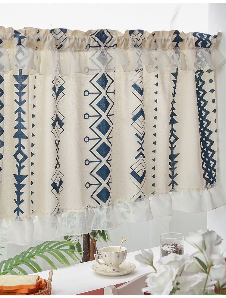 お部屋を上品に彩ってくれる小窓カーテンです。小窓や戸棚の目隠し、インテリアのワンポイントにお使いください。