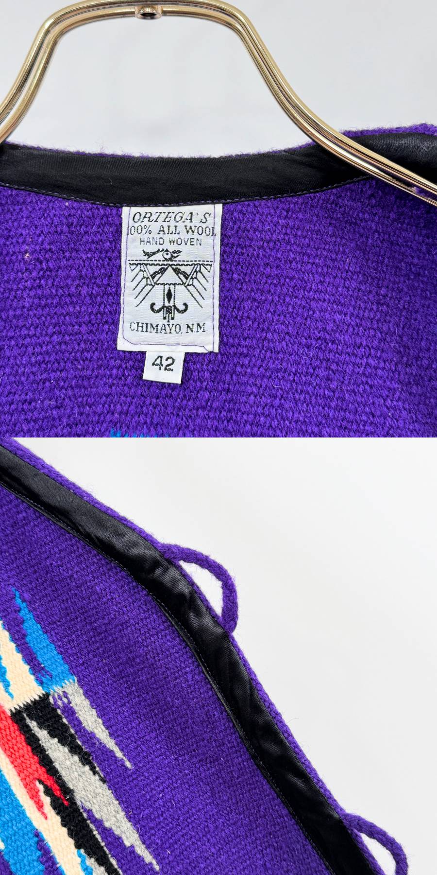 希少《 Old Model / 90s / ORTEGA'S / Size 42 》90s 美品【 ビンテージ オルテガ サンダーバード 紫 チマヨ ベスト ビンテージ 】