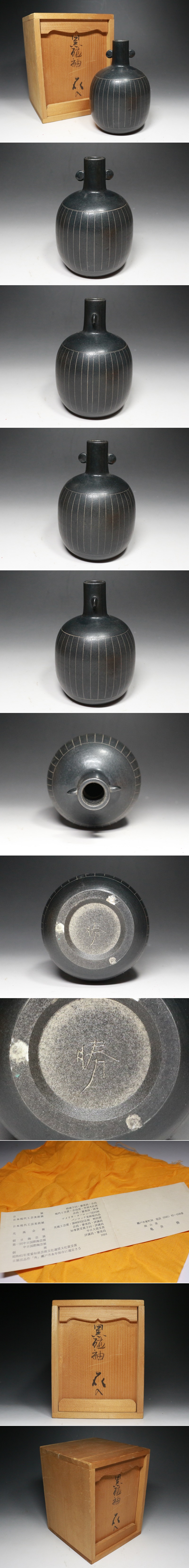 | ■瀬戸■亀井勝・黒磁釉・花入・花器・共箱・洞山窯・f836 | ||||||||||||||||||||