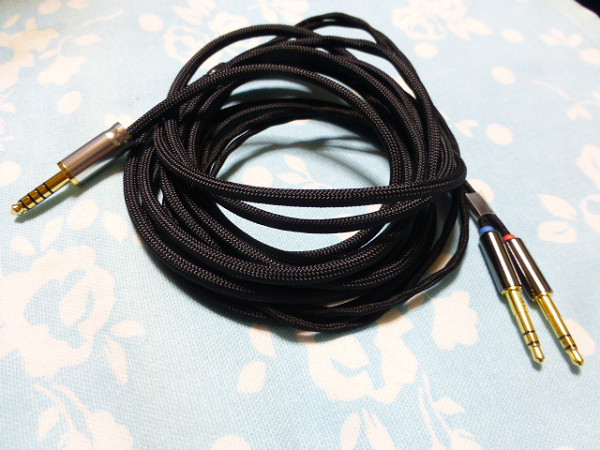 MOGAMI 2944から抜き出した芯線を4本使用して作製した「4.4mm5極仕様」ヘッドホン交換用バランスケーブルです。