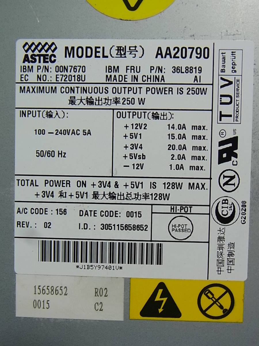 IBM eServer xSeries 230/232/240/250/340/332, NetFinity 5100/5500/5600 等 250W 冗長化電源です。