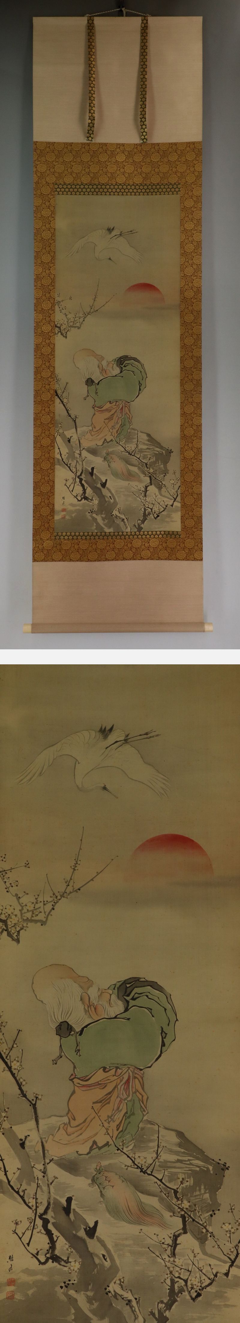 | №2203121 名品【真作】根本樵谷【慶祝図】◆絹本◆合箱◆掛軸 | |