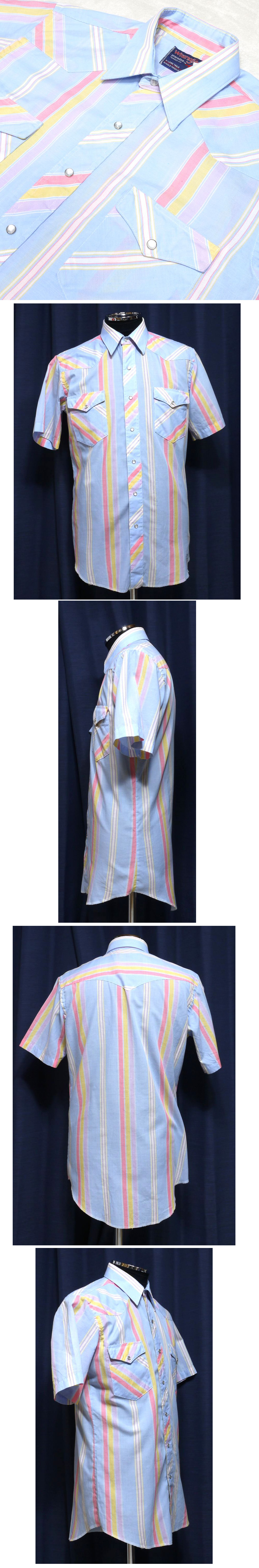 ☆アメリカ製 ラングラー Wrangler ウエスタンシャツ サイズ15 1/2 メンズM位 薄いブルー系です。