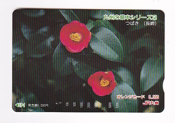 ◇JR九州◇九州の県木シリーズ3 つばき◇記念オレンジカード5300円券1穴使用済