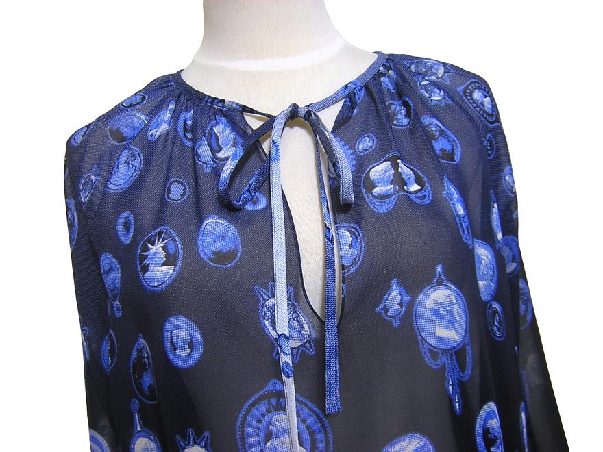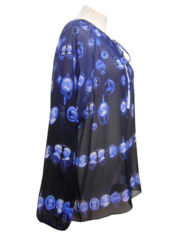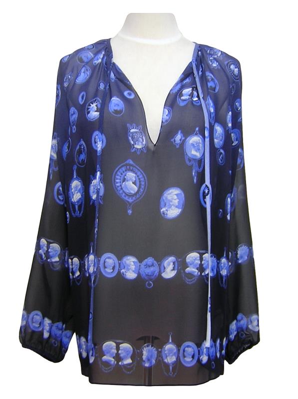 Jean Paul GAULTIER のイタリア製、 カメオ柄シルクシフォンブラウスでございます。 透け感あり/ | |