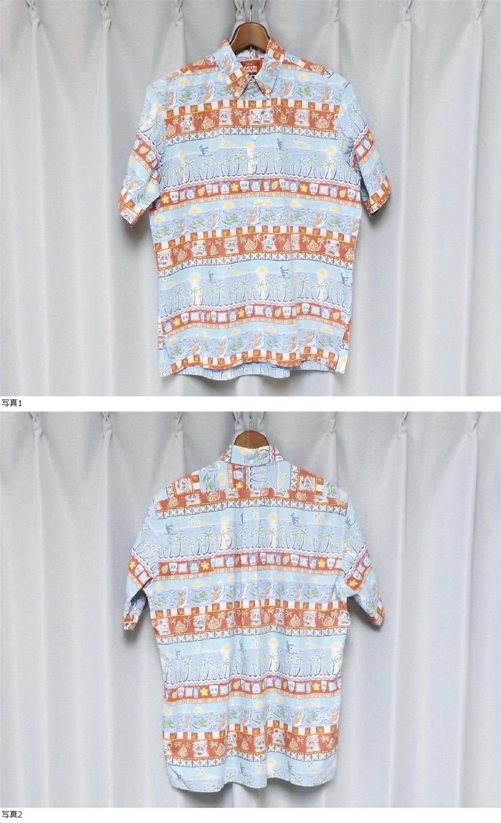 コットンアロハの老舗 レインスプーナーにディズニーが別注した超レアアイテムで、ハワイアン調に描かれたミッキーやドナルドが可愛らしく非常にオススメです