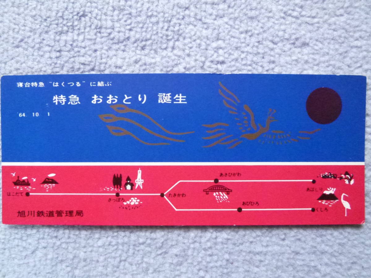 特急おおとり誕生記念券1枚(国鉄/札幌鉄道管理局/1964年10月1日/キハ80系/函館運転所/函館⇔網走/釧路)