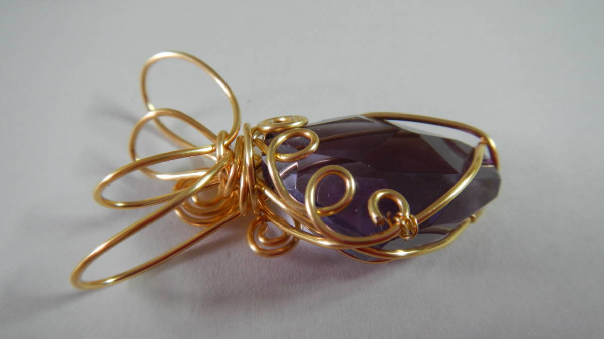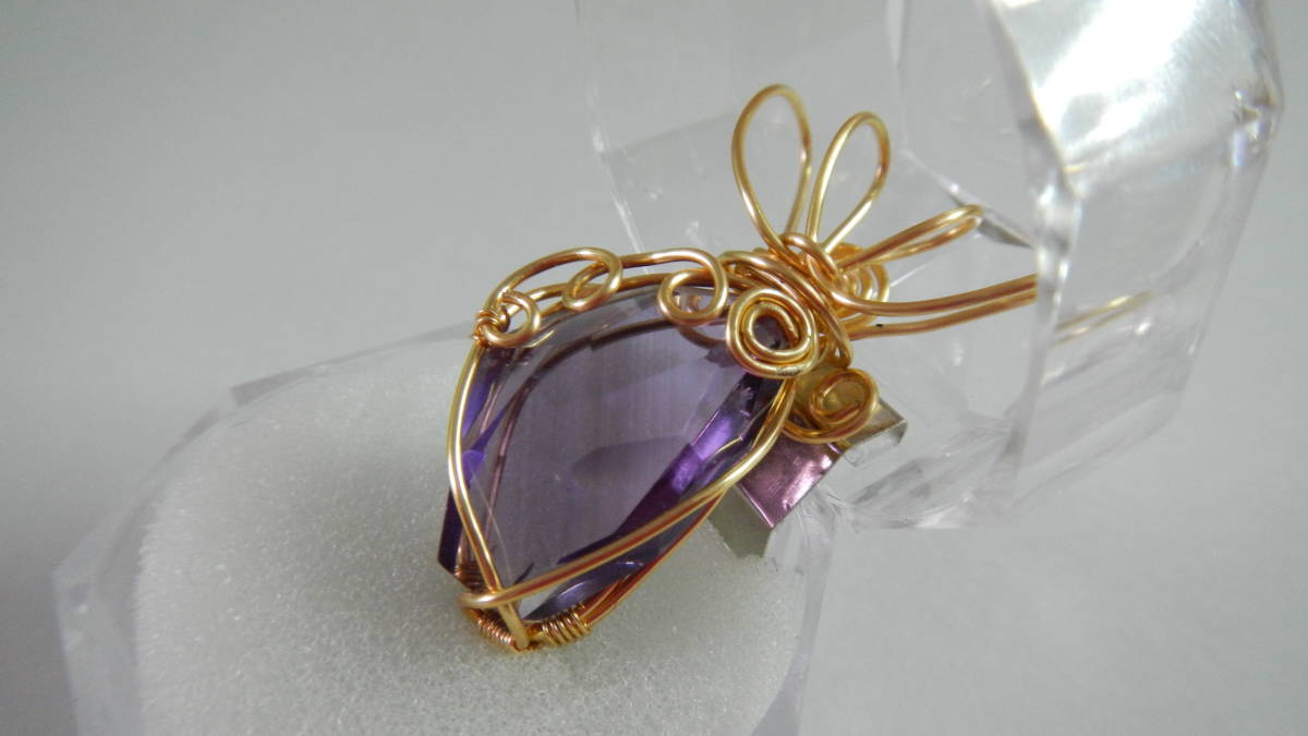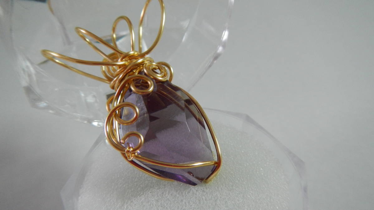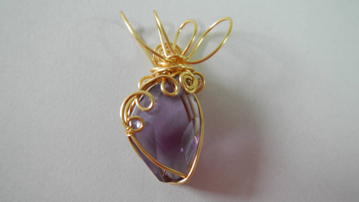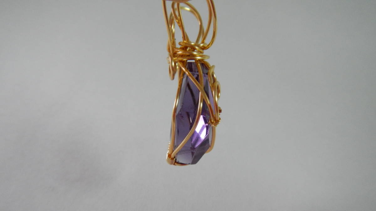 ワイヤーペンダントトップ 【管理番号F】 アメジスト ワイヤーラップ アクセサリー 部品取り 可愛い 綺麗系 ハンドメイド パープル 大粒