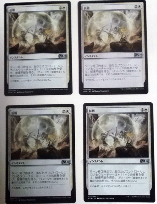 MTG日本語/4枚セット/抗戦/基本2019/アンコモンです。中古品扱いですので、神経質な方、美品をお求めの方は入札をご遠慮ください。