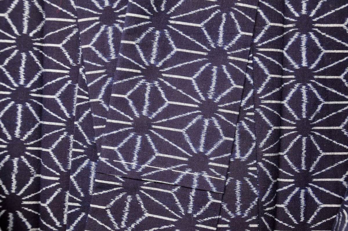 パールトーン ハイクオリティー 着物 和装 小紋 紺 麻の葉文様