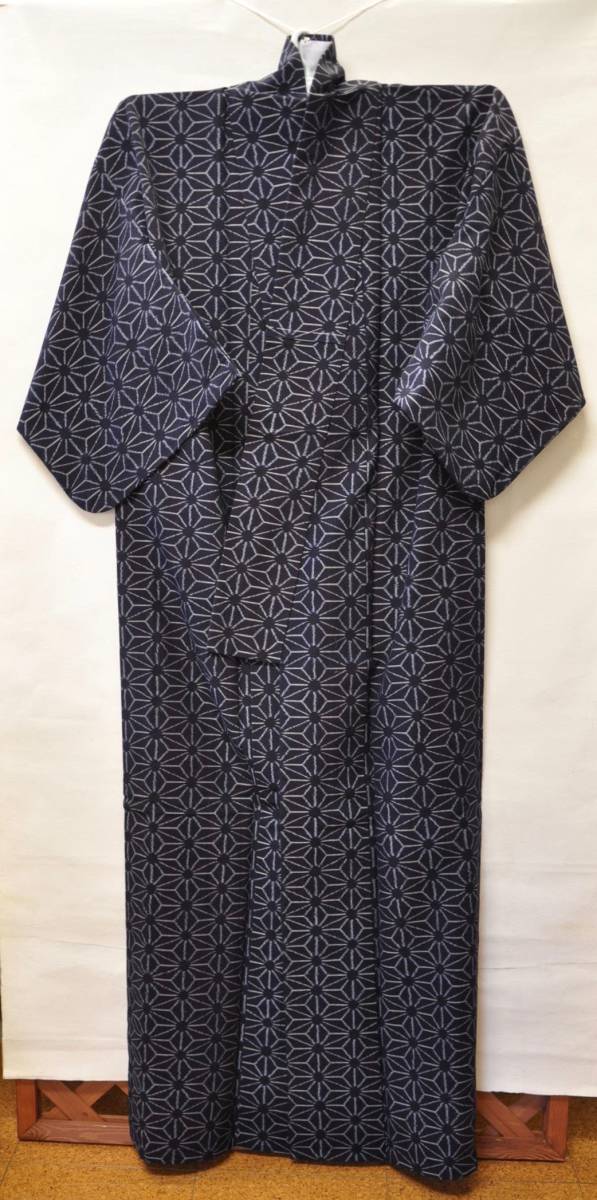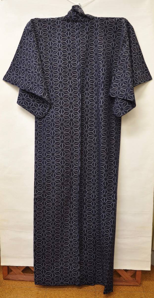 着物 和装 小紋 紺 麻の葉文様 ハイクオリティな逸品! エステートセール! MMC