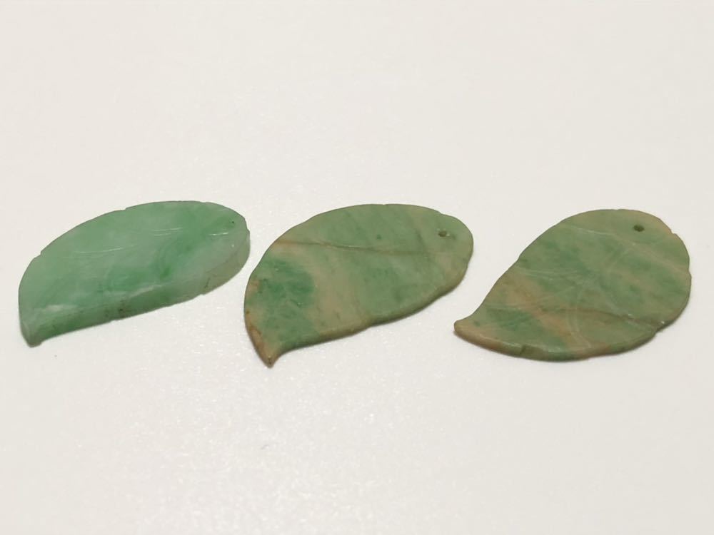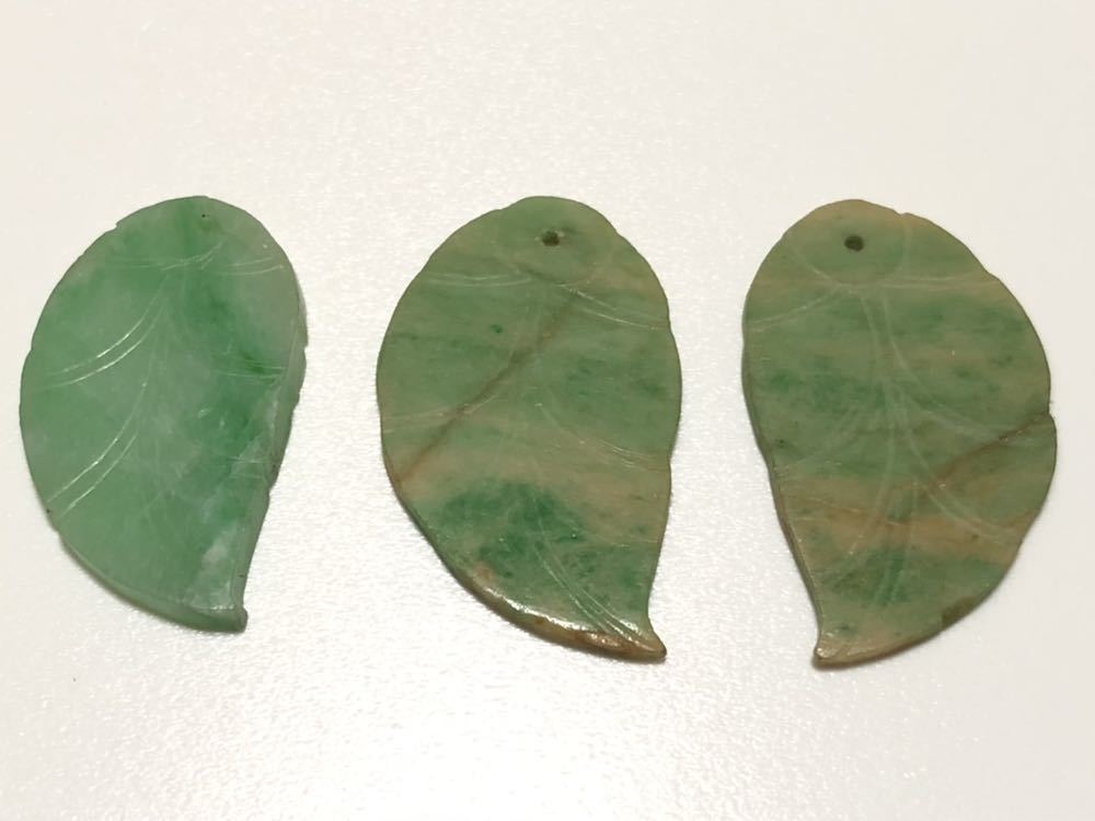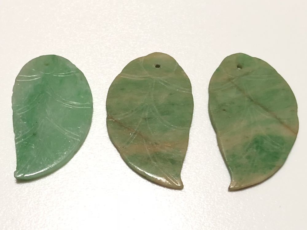 本翡翠を使用した、葉細工のペンダントトップ用ルース3点です。ペンダントトップ用の金具は別途必要です。