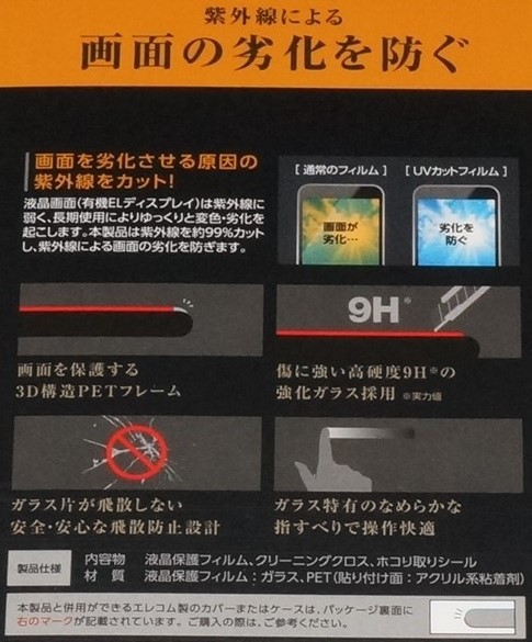 角割れしないフレーム付き。 美しいガラスで画面の端まで保護するフルカバータイプで、画面劣化の原因となる紫外線をカットする液晶保護ガラスフィルムです。