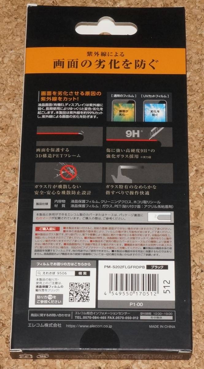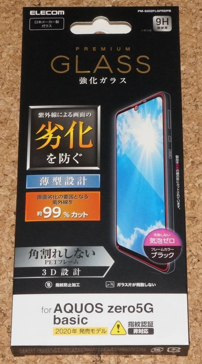 ELECOM AQUOS zero5G basic 液晶保護ガラスフィルム 3D 紫外線カット PETフレーム付 ブラック 新品・未開封です。