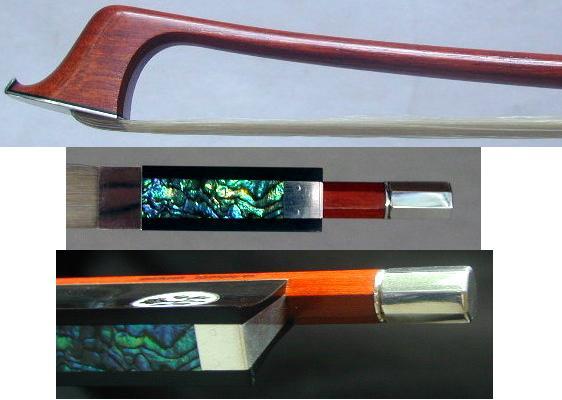 ビオラ楽弓★名職人RONG-DI MA作★N.MAUCHARDレプリカモデル、 出品価格は消費税込み表示です。 お求めの際には入札前に是非試奏されます事をお薦め致します。 RONG-DI MAは2013年、北京で開催された第二回国際弦楽器製作コンクール (The second China International Violin Making and Bow Making Competition) に於いてバイオリン弓とビオラ弓の両方で金賞を受賞され、 thestrad.comの記事 https://www.thestrad.com/1530.article にも掲載されました。 今回出品させて頂く弓は Nicolas Mauchard 1840年作のビオラ楽弓のレプリカです。 製作者曰く、材、出来上がりともに同類の楽弓の中で自信作のVa楽弓で 銀黒檀仕様という事もあり大変コストパフォーマンスが良いです。 音色、音の太さ、アクションに対する素早い反応性と音の立ち上がり、 切れ味の良いスピカート、と素晴しいの一言に尽きます。 操作性の良さが心地良く、嬉しく感じます。 ♪RONG-DI MAの楽弓は日本国内でもかなり知名度が上がり、 価格が上昇しつつあります。今後さらなる価格上昇が予想されます。 ♪特徴 精選フェルナンブーコ材:自然乾燥20年以上寝かした音色が良く密度のある材、 材のカットも大変上手く行った弓で木目も綺麗です。 重量:71.2g、 純銀フィッティング、黒檀フロッグ、 楕円の中にバラの貝装飾、楕円の淵は銀、長径16mm、短径:12mm、 ネジ自体もRONG-DI MAの手作りで詳細迄当時の形状を再現、 内部の材質も当時と同じ。 製作者の刻印は棹上にあります。 巻線は伝統的な銀巻線です。 ♪サービス 御希望でしたら一回目の毛替えはRONG-DI MA自身が 棹の具合を再確認するのと同時に無料でやってくれるそうです。 ♪RONG-DI MAのVa楽弓はシカゴ交響楽団のビオラ副首席奏者や 上海クァルテットのホンガン・リ Honggang Li がコンサートで使っています。 ♪製作者のRONG-DI MAは現在の中国の弓製作者の第一人者で 北京中央音楽院の林教授、カナダの音楽大学教授、 上海クァルテットの全員、等々のプロのバイオリニスト(ソリスト)達にも 大変人気のある弓製作者です。 ♪2002年のチャイコフスキーコンクールVn演奏部門第二位の方も RONG-DI MAの弓で入賞していますし メニューヒン国際コンクールジュニア部門優勝者においても RONG-DI MAの弓を使って優勝を成し遂げた方がいます。 ♪13才でパガニーニのカプリース Op.1 の24曲全曲を完璧に弾きこなし CD製作した神童Yang Tian-Waもヨーゼフ・ガルネリ(実物)と RONG-DI MAの弓でCD録音しています。 ♪その後、チョーリャン・リン(Vn)やアイザック・スターンに 才能を見出されたJIAN WANG(王健)にも提供されました。 御参考ですが https://www.youtube.com/watch?v=q8yn-3uO8iQ YouTubeでRONG-DI MAの楽弓で演奏するJIAN WANG(王健)の姿を確認することも出来ます。 【提供履歴】 Peccatte、Tourte、Voirin、Persoit、Lupo、Pajeot 、V.FETIQUE、 N.Simon、 Tubbs、MALINE等のモデルをお譲りしており、皆様に気に入って頂いております。 現役のプロの方にもこの弓の性能を確認して頂き、納品させて頂いております。 MA先生に「フェルナンブーコ材にはどのような種類があるのですか?」と 聞きましたところ、「50種程もあるのですが大別すると2種に分類され・・・・」と 永遠話が尽きませんでした。本当に凄い研究家だと思いました。 RONG-DI MAの作品は楽弓に対する熱心な研究がにじみ出るかのように その製作誠意が伝わってきます。棹はおろか、ネジ、フィッティングまで 全てRONG-DI MAが製作していて出来る限り当時の再現を試みています。 勿論、製作のための道具まで彼自身で手作りされています。 尚、RONG-DI MAは1996年にもアメリカで定評のあります VSAコンクールにバイオリン弓、ビオラ弓、チェロ弓、コントラバス弓の 4本を出品し全ての作品で賞を取っています。