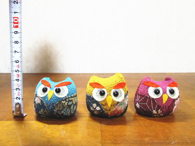 (商品名) 【ちりめん細工 ふくろう お手玉 3個セット】フクロウ/梟/置物/青/黄/紫