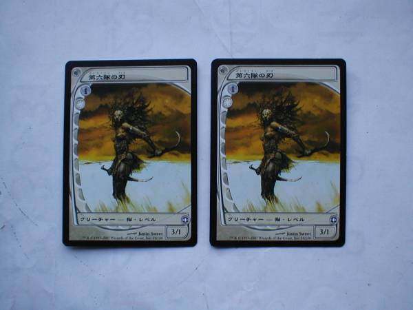 B知人の委託品です。 画像が全てです。 MTG 第六隊の刃/Blade of the Sixth Pride 日本語4枚です。 何語だか分らない時があります。 エキスパンション、外国語(言葉)は画像で確認をお願いします。 カードはプレイしています。 プレイ後、カードはスリーブから出してストレンジボックスの中で保管していました。 カードに目立つ擦り傷、キズ、ペン跡のようなキズ、汚れ、角や端に傷、黒枠にキズ、などのキズが結構あります。 スリーブに入れないでストレンジボックスに保管してたので擦り傷が沢山あります。 カードからタバコや香水の匂いがします。 カードが大きく丸まっていたり反ってたりしています。 気が付かない部分がありますので程度を気にする方は入札をご遠慮下さい。 程度は下、ボロです。 コレクションには向きません。 何か起きた場合には自分では対応が出来ませんのでご理解頂ける方のみ入札をお願いします。 普通郵便、クロネコメール便で発送します。 郵便事故や郵便破損が起きた場合には保障できません。 ノ-クレーム、ノーリターンでお願いします。
