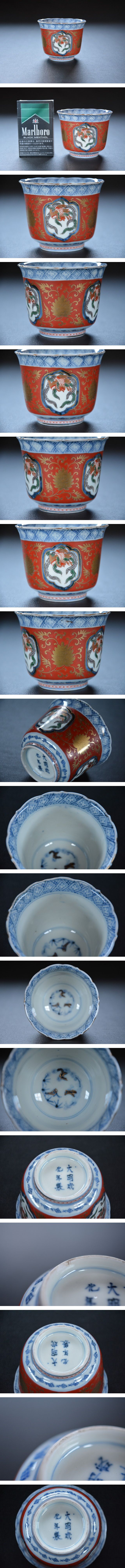 【十三】 古伊万里窓絵鳳凰紋輪花形蕎麦猪口 大明成化年製 江戸期 C 検索用語→A0196向付酒器盃大猪口金襴手