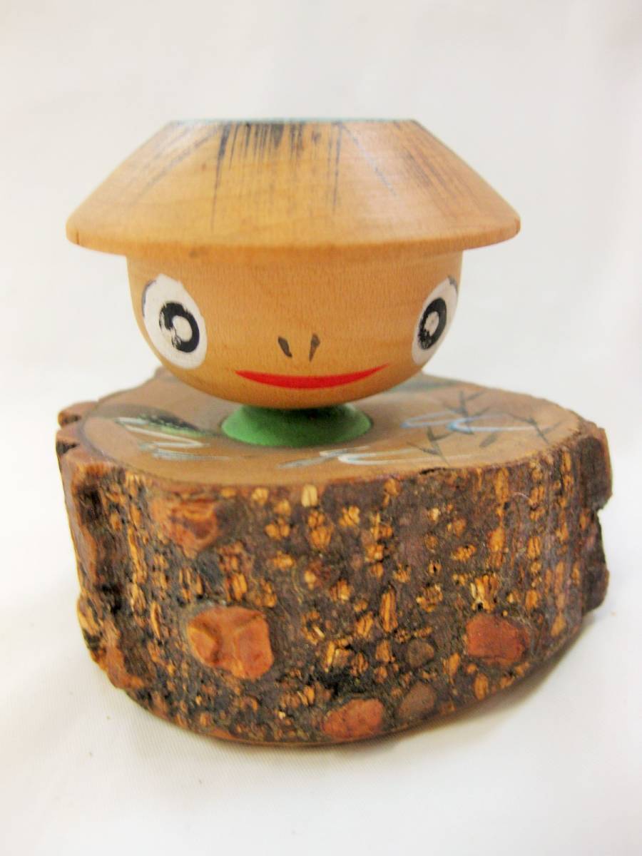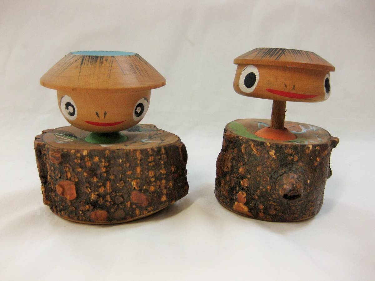 昭和レトロ 河童 木製 木工 ミニチュア 置物 当時物 人形 ペア オブジェ 和風 和調 日本
