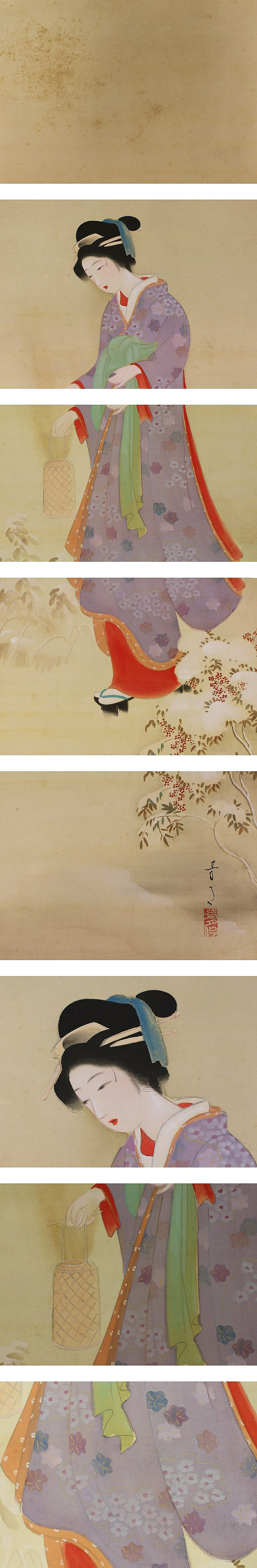 | №1409020【真作】横尾芳月【雪道に美人】◆絹本◆合箱◆掛軸 | |
