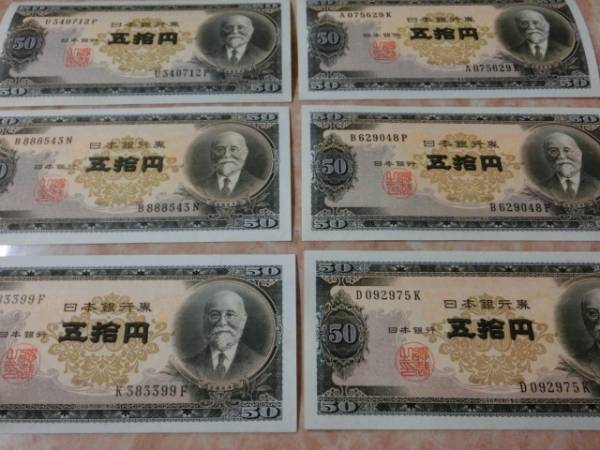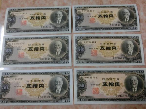 日本銀行券B号50円 高橋50円の極美品~準未使用を6枚セットです。