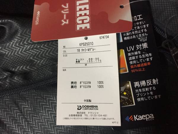 【同梱不可!】【Kaepa】裏フリース ジャンバー★M★チャコールグレー★撥水加工★UV加工★再帰反射★