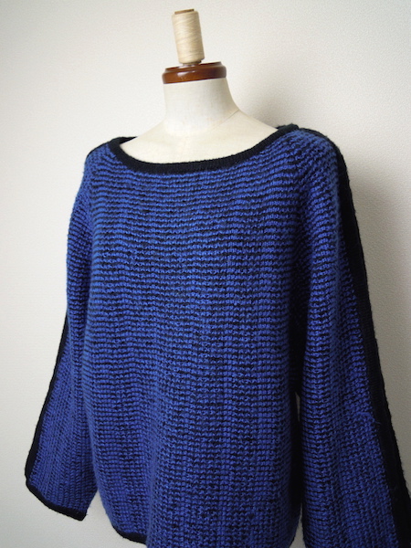80's ローゲージニットセーター●ビンテージアメリカ古着/ブルー