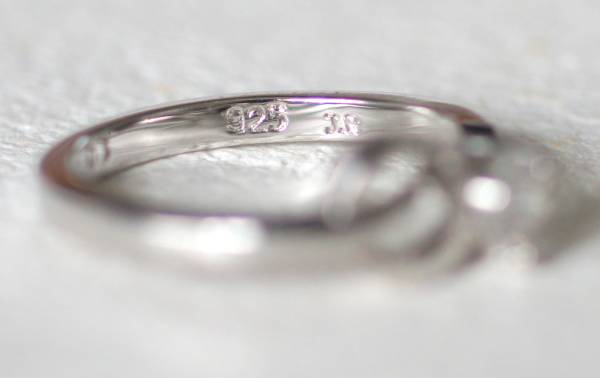 リング内側に925の刻印と、J.Rという刻印と、10という刻印と、