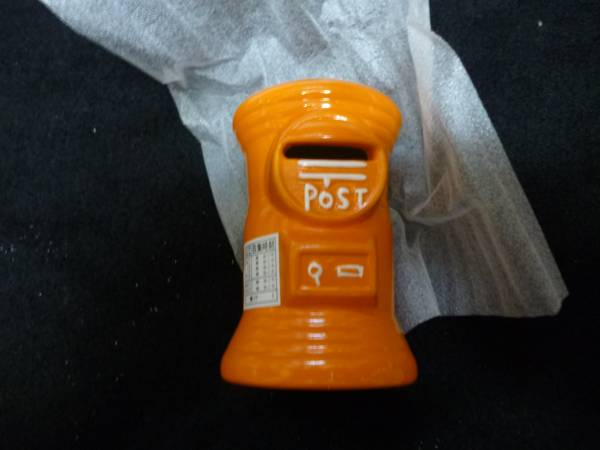 アンティーク 郵便ポスト型貯金箱レッド高さ約10cm 陶器製