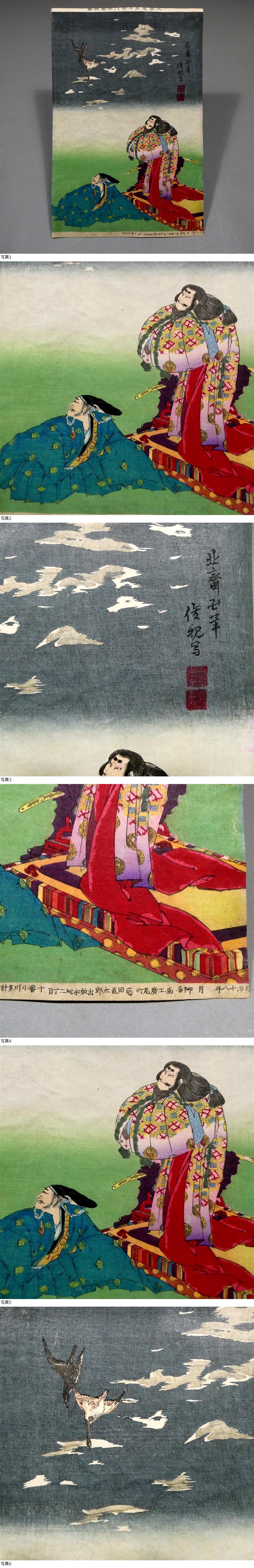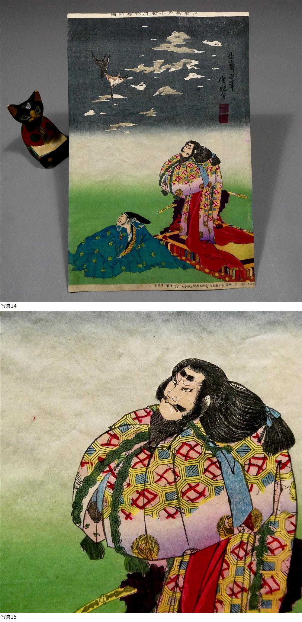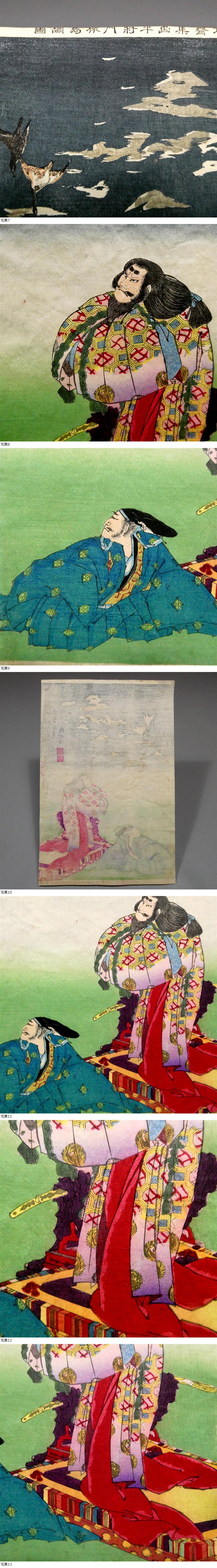 ■ 蒔田俊親 明治18年 木版浮世絵 「北斎集画」 平将門猿島館図 葛飾北斎の筆致を明治の技巧で再現 ■