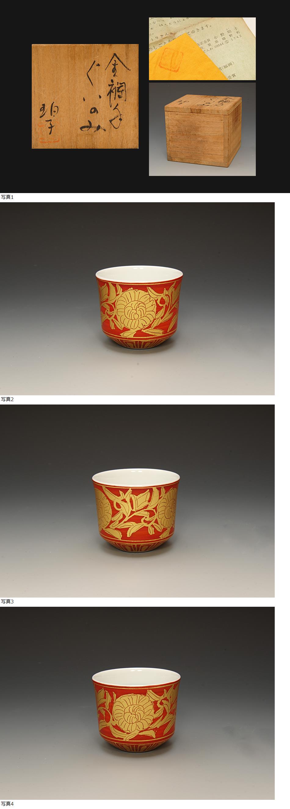 佐賀県無形文化財作家の鮮やかで繊細丁重な金彩の施された完璧な上がりの作品です。