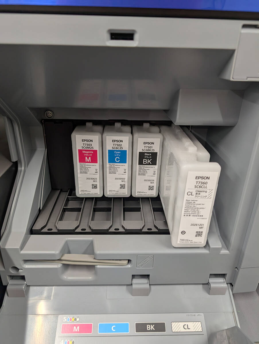 サンプル出力以降、使用しておらず、メンテナンスで稼働しておりましたが、インクがなくなってからは、未稼働の状態した。