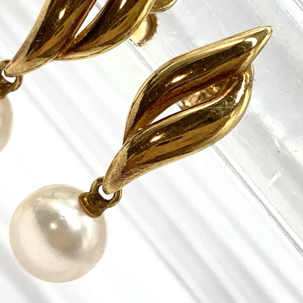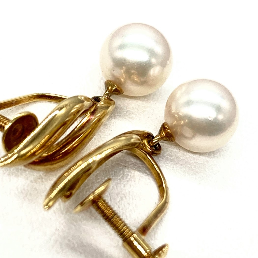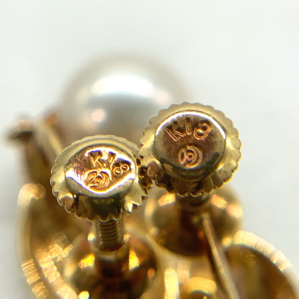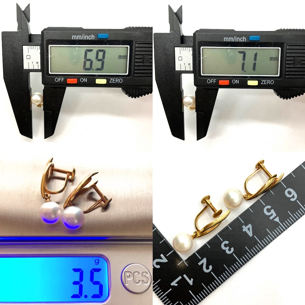 【K-8】K18 月マーク刻印 田崎真珠 TASAKI タサキ パールイヤリング 18金アクセサリー ファインジュエリー レディース 7.1mm/6.9mm珠 総重量約3.5g 現状品 | |||