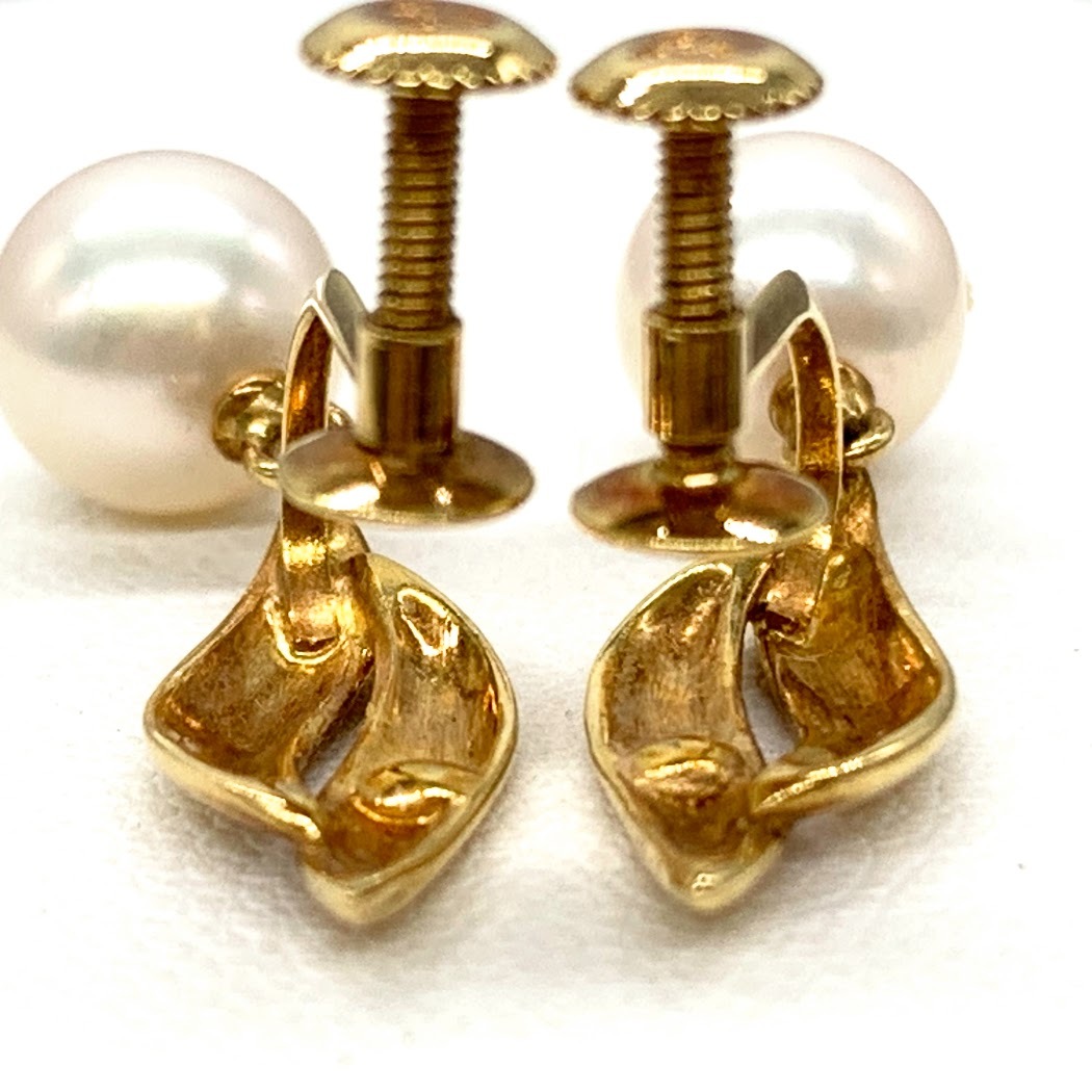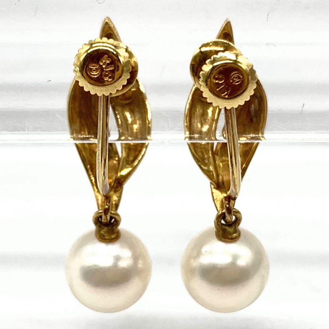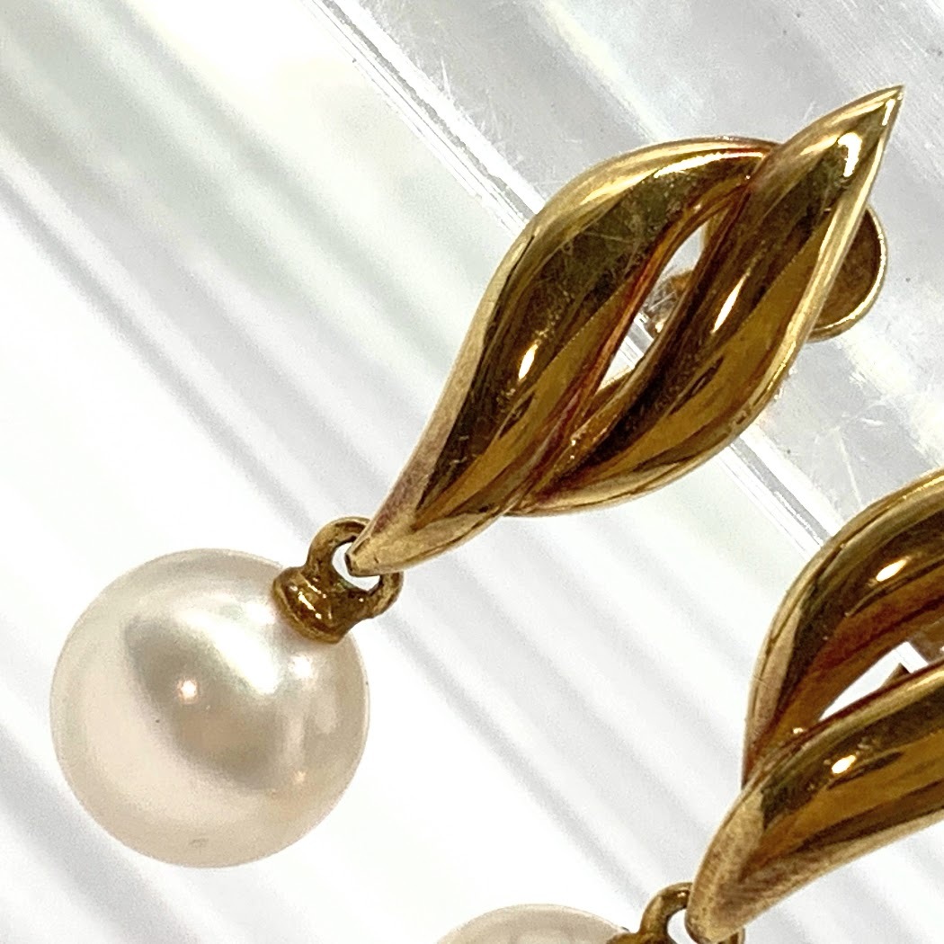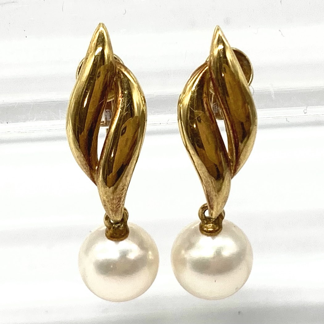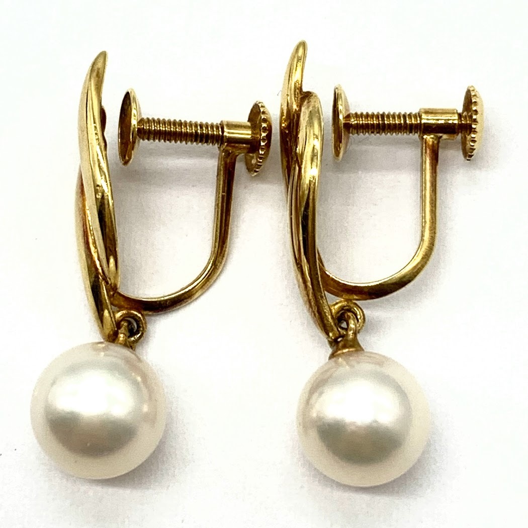 【K-8】K18 月マーク刻印 田崎真珠 TASAKI タサキ パールイヤリング 18金アクセサリー ファインジュエリー レディース 7.1mm/6.9mm珠 総重量約3.5g 現状品 | |||