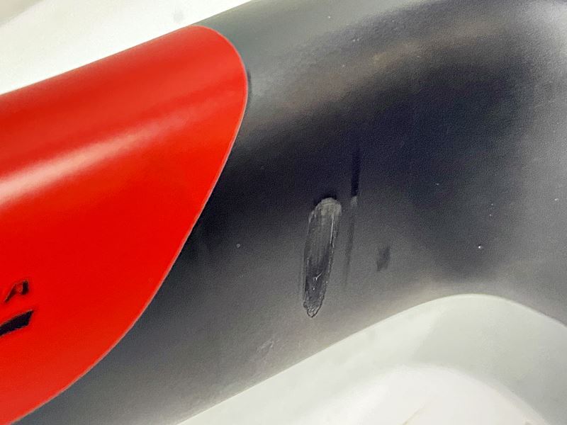 チェーンステー内側にタイヤのスレによる凹みがあります。