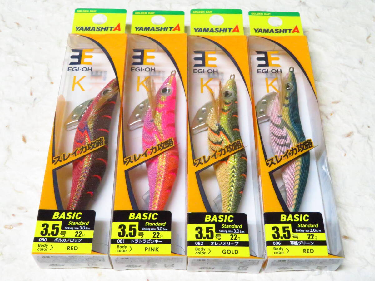 ヤマシタ エギ王K 3.5号 4色セット 080 ボルカノロック 081 トラトラピンキー 082 オレノオリーブ 006 軍艦グリーン