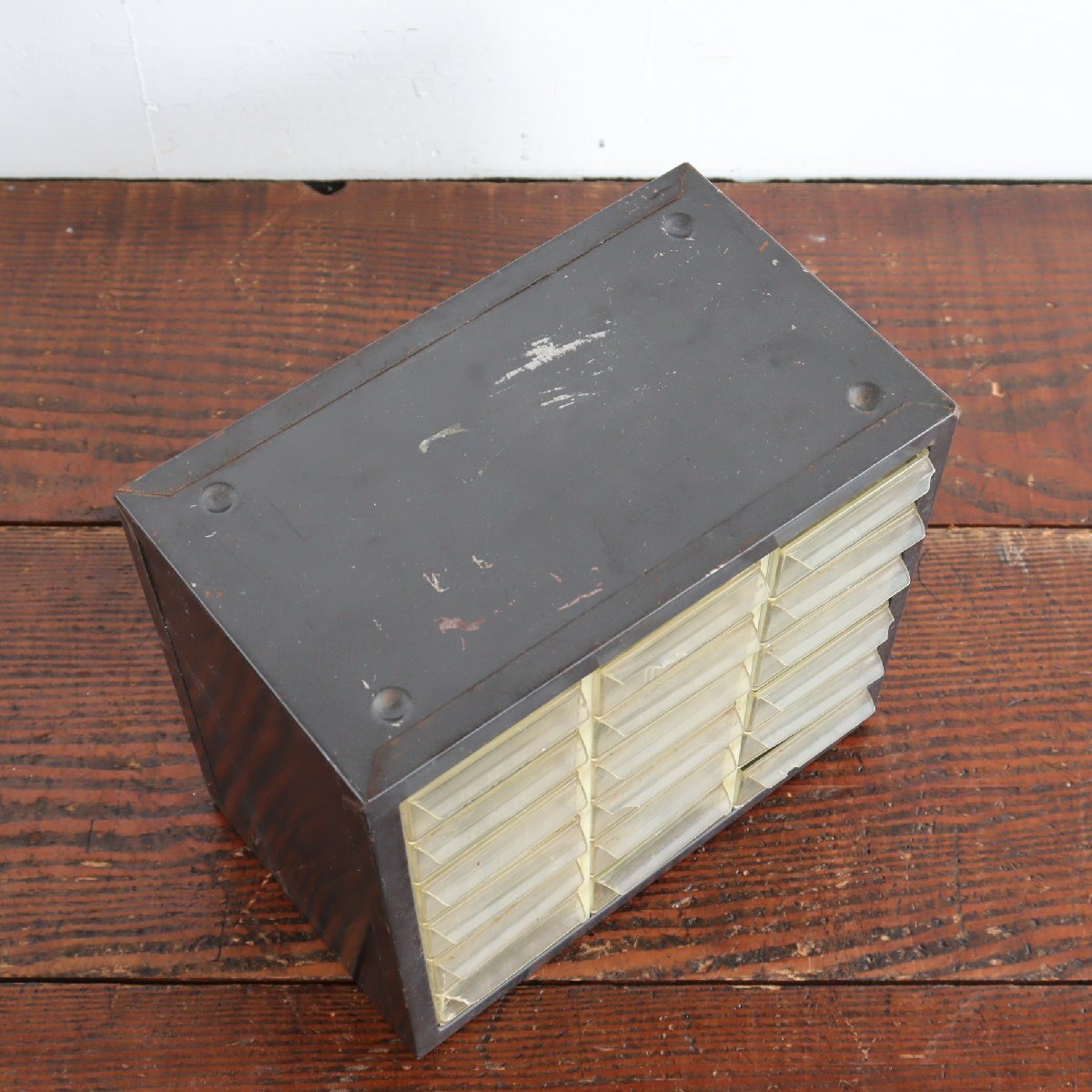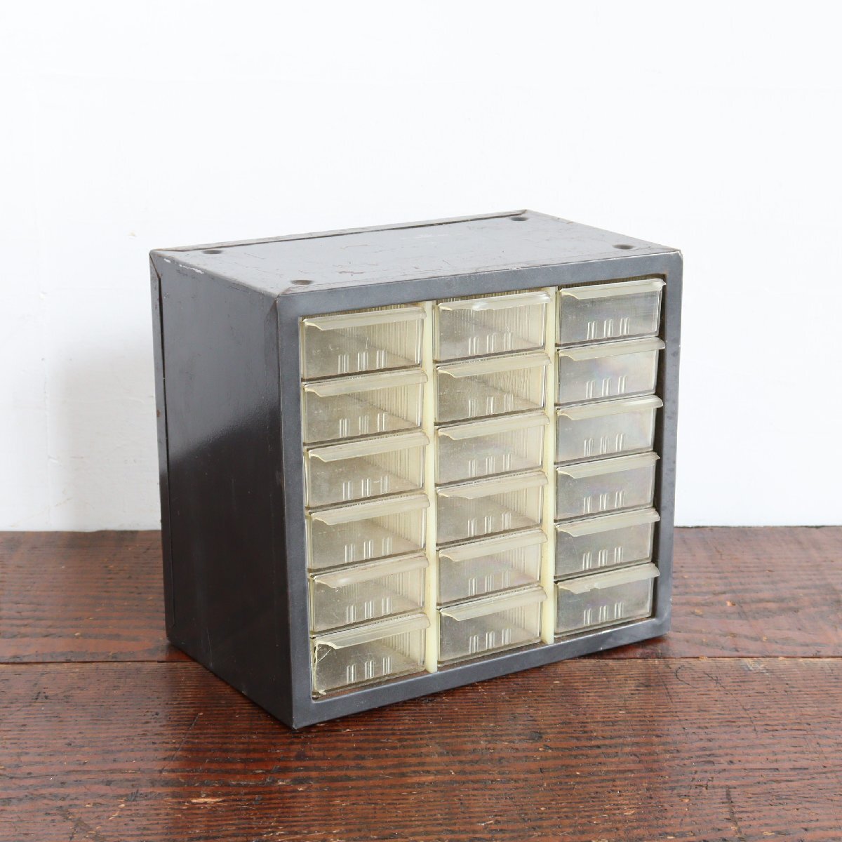 | 商品説明 explanation | オハイオ州にある【AKRO-MILS/アクロミルズ】社のパーツキャビネットです。 引き出しはプラスチック製、フレームはスチール製です。 使い込まれたヤレ感のある風合いなどヴィンテージらしさ満載です。 小物の収納はもちろん、ディスプレイするだけでも雰囲気が出ます。 ご自宅や店舗什器にいかがでしょうか。 |
