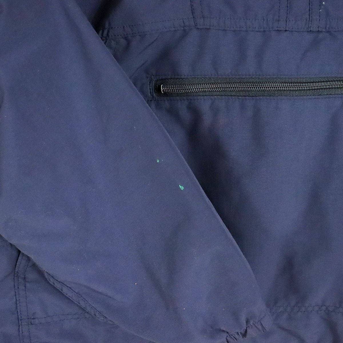 中古品です。使用感があります。写真にあるように右袖に緑色の塗料汚れがあります。
