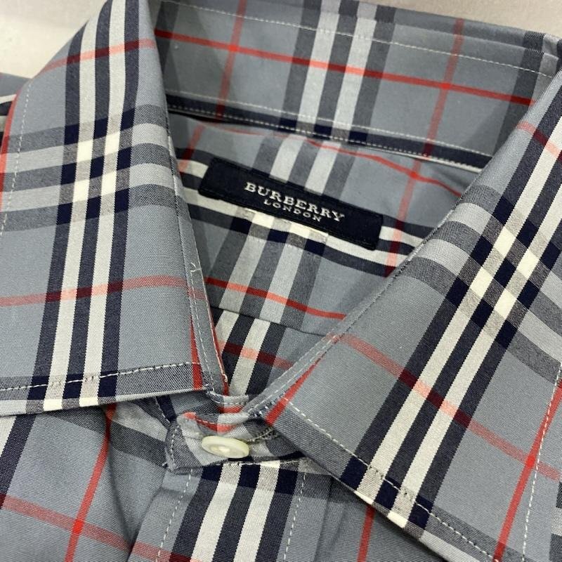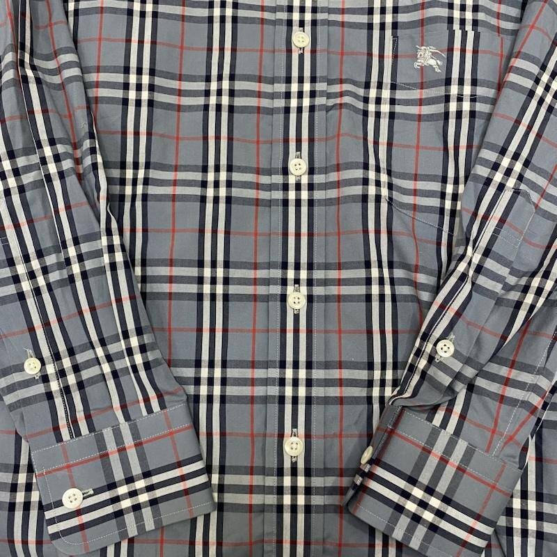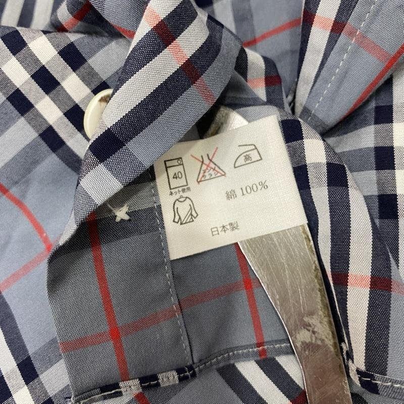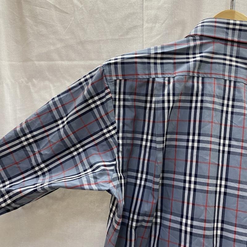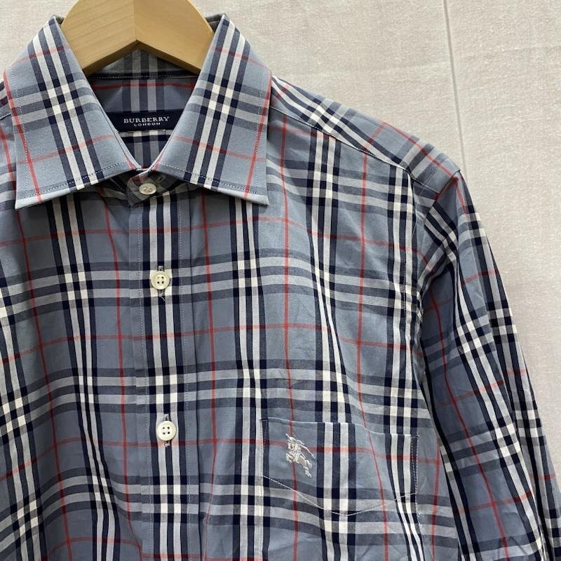 バーバリーロンドン ノバチェック 長袖シャツ 刺繍ロゴ blue CHOYA株式会社製 -
