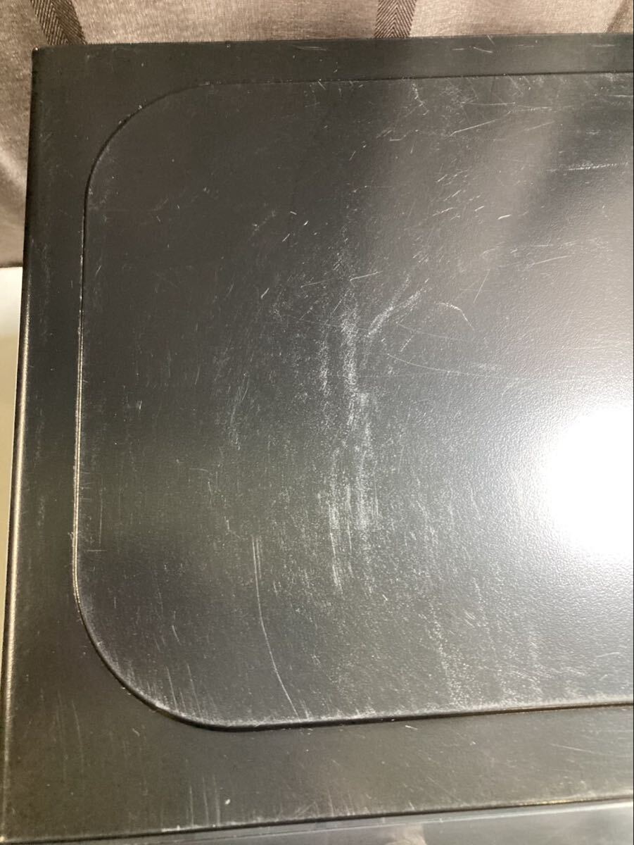 レンジ天板全面に擦り傷有り。ドア縁擦り傷有り。全体的に多少の擦り傷汚れ有り。