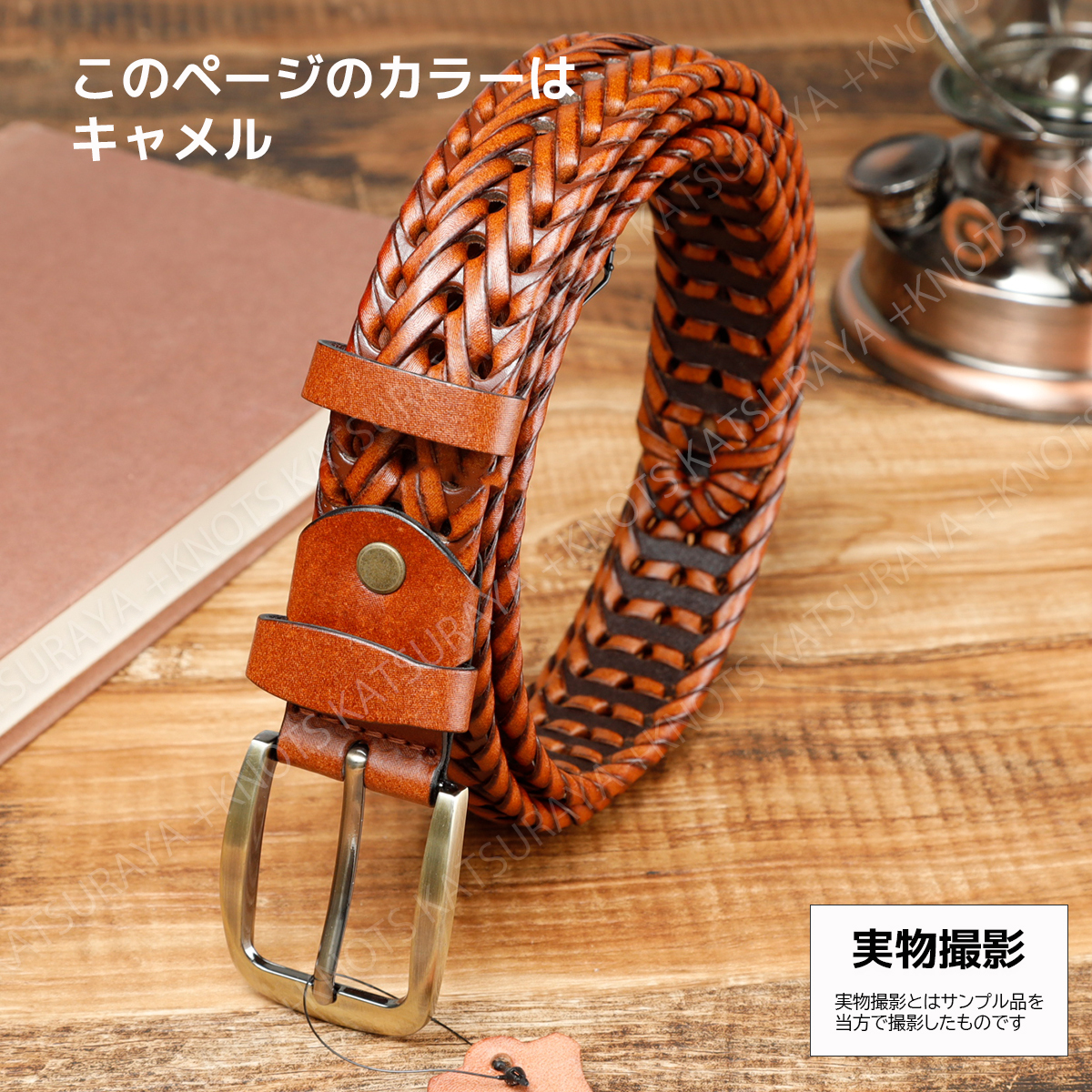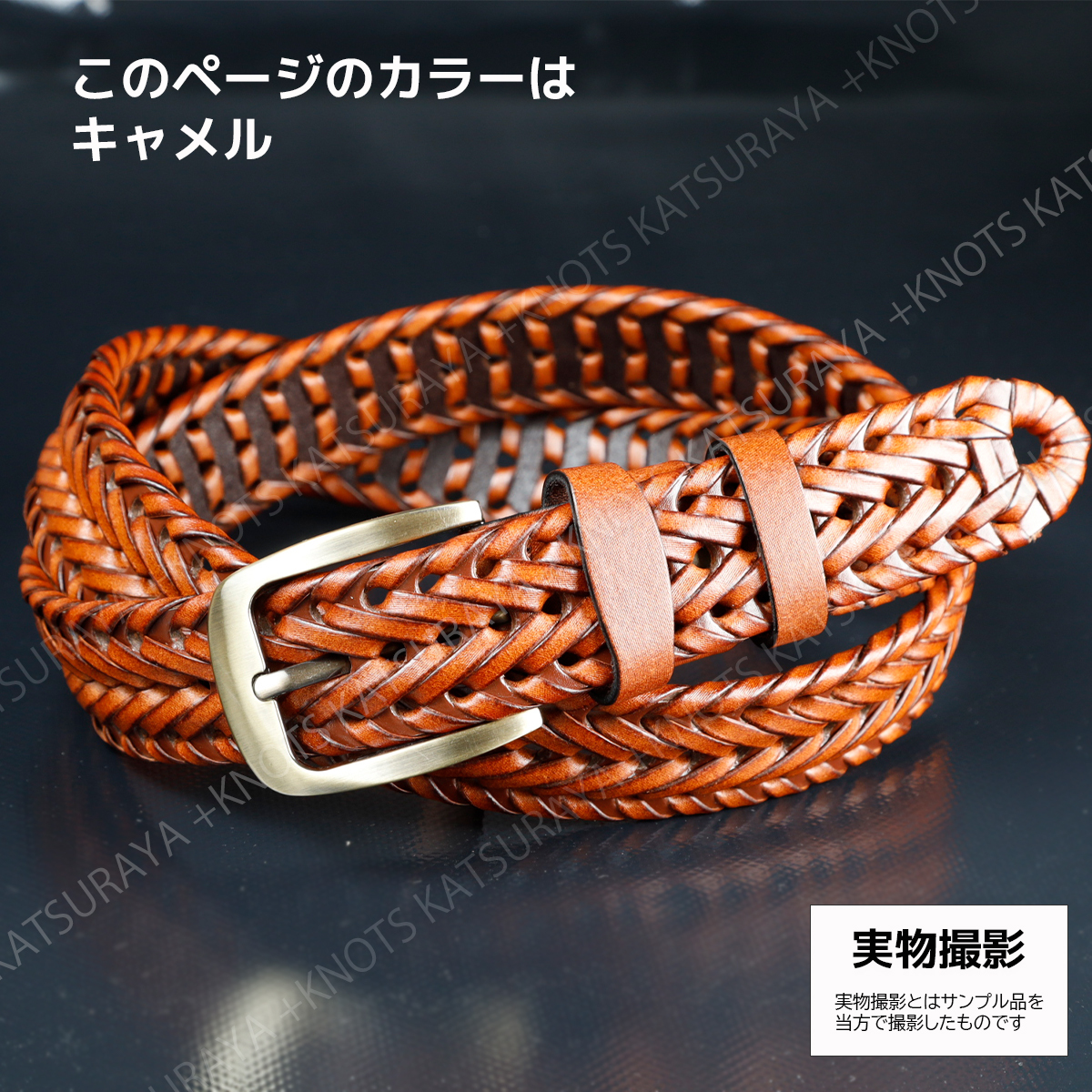 本革 メンズ ベルト★キャメル★編み込み メッシュベルト 紳士 レザーベルト ビジネス デニム カジュアル スーツ ゴルフ 長さ調整調節a211
