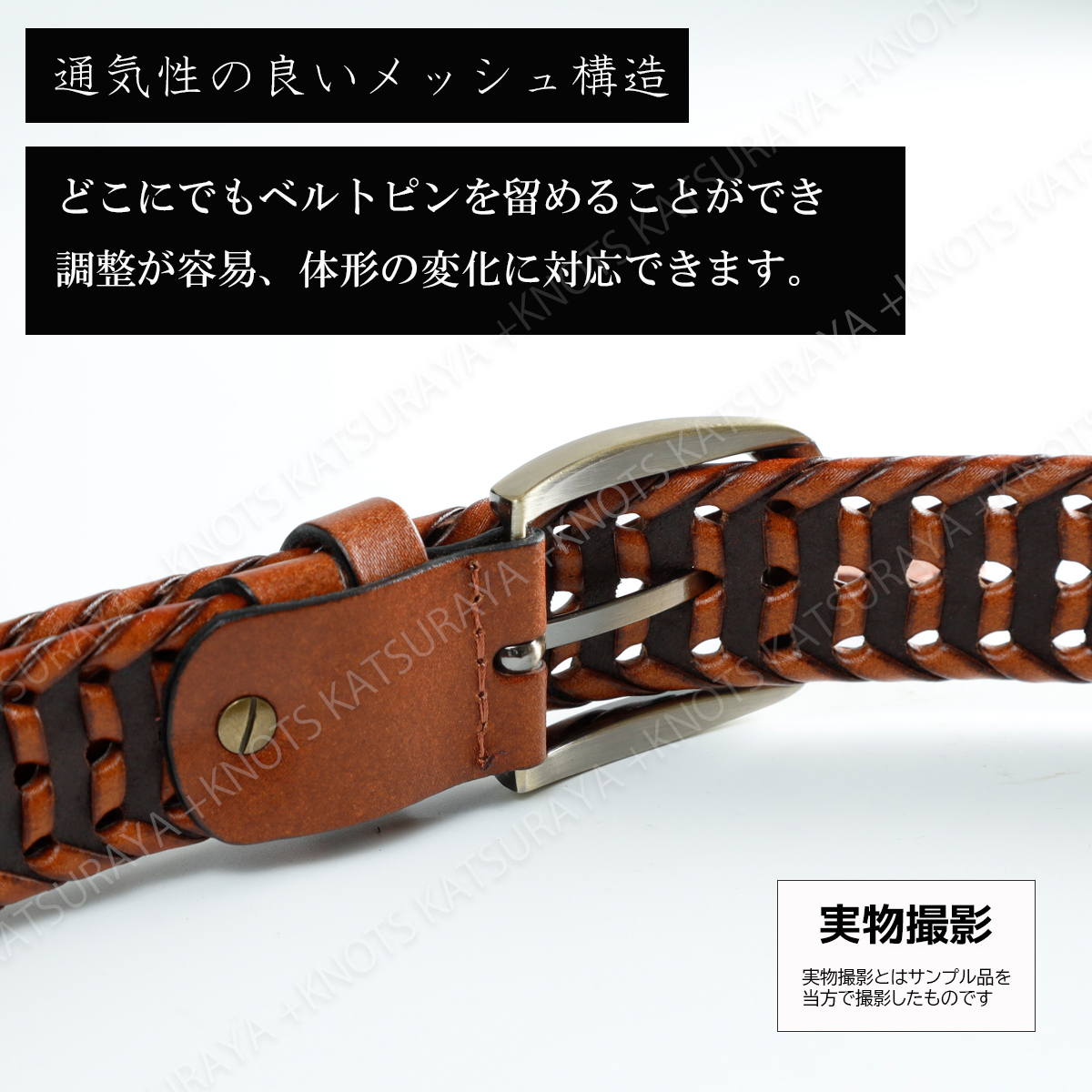 本革 メンズ メッシュ 編み込み ベルト ビジネス ゴルフ