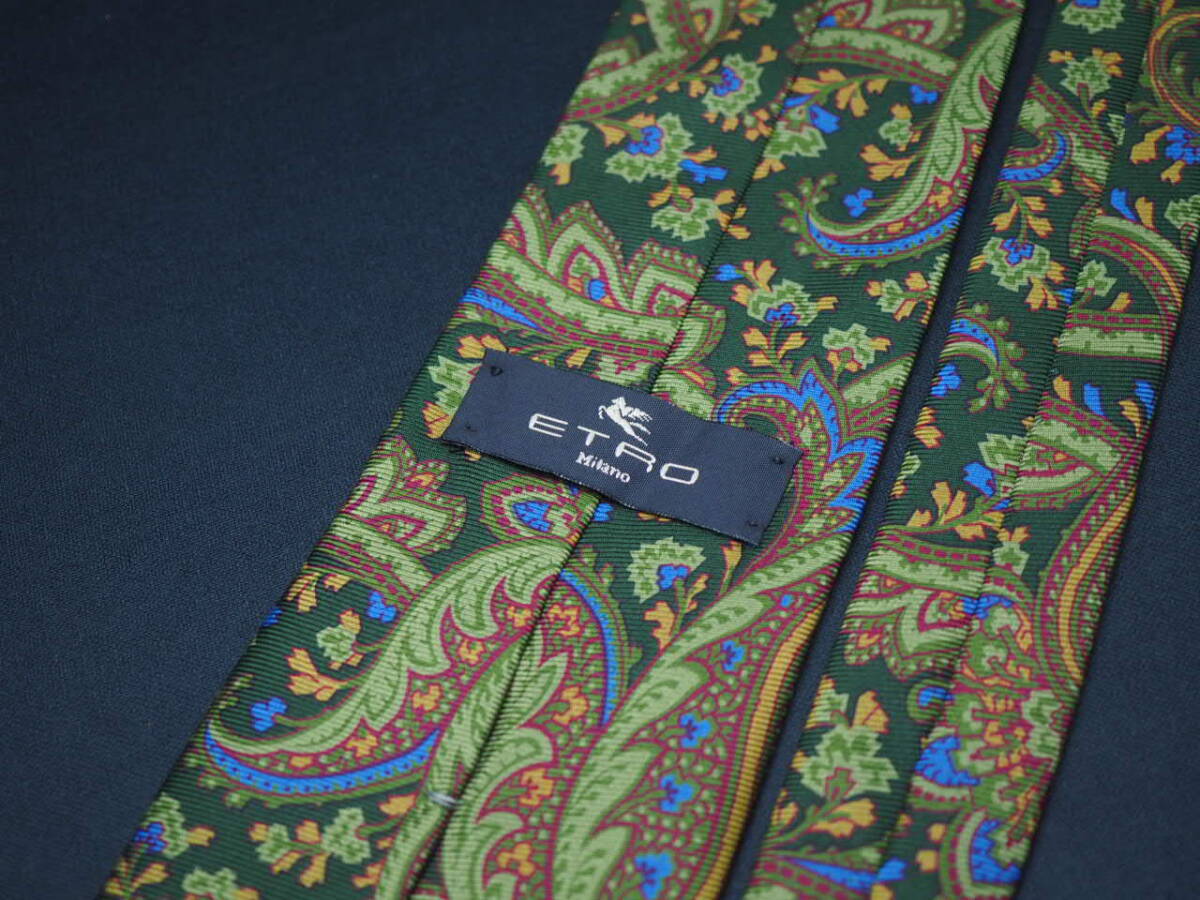 美品【ETRO エトロ】 F2709 ペイズリー グリーン系 SILK ブランド ネクタイ 古着 良品 転売 仕入