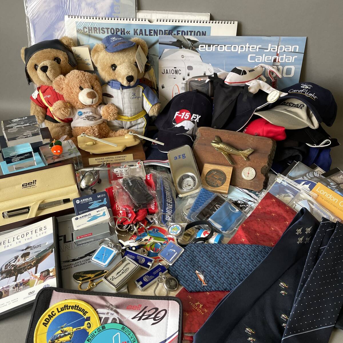 MS3541 航空機 ヘリコプター 飛行機 記念 限定 非売品 グッズ 雑貨 大量 まとめて キーホルダー Tシャツ 帽子 ネクタイ ぬいぐるみ CD 置物 です。