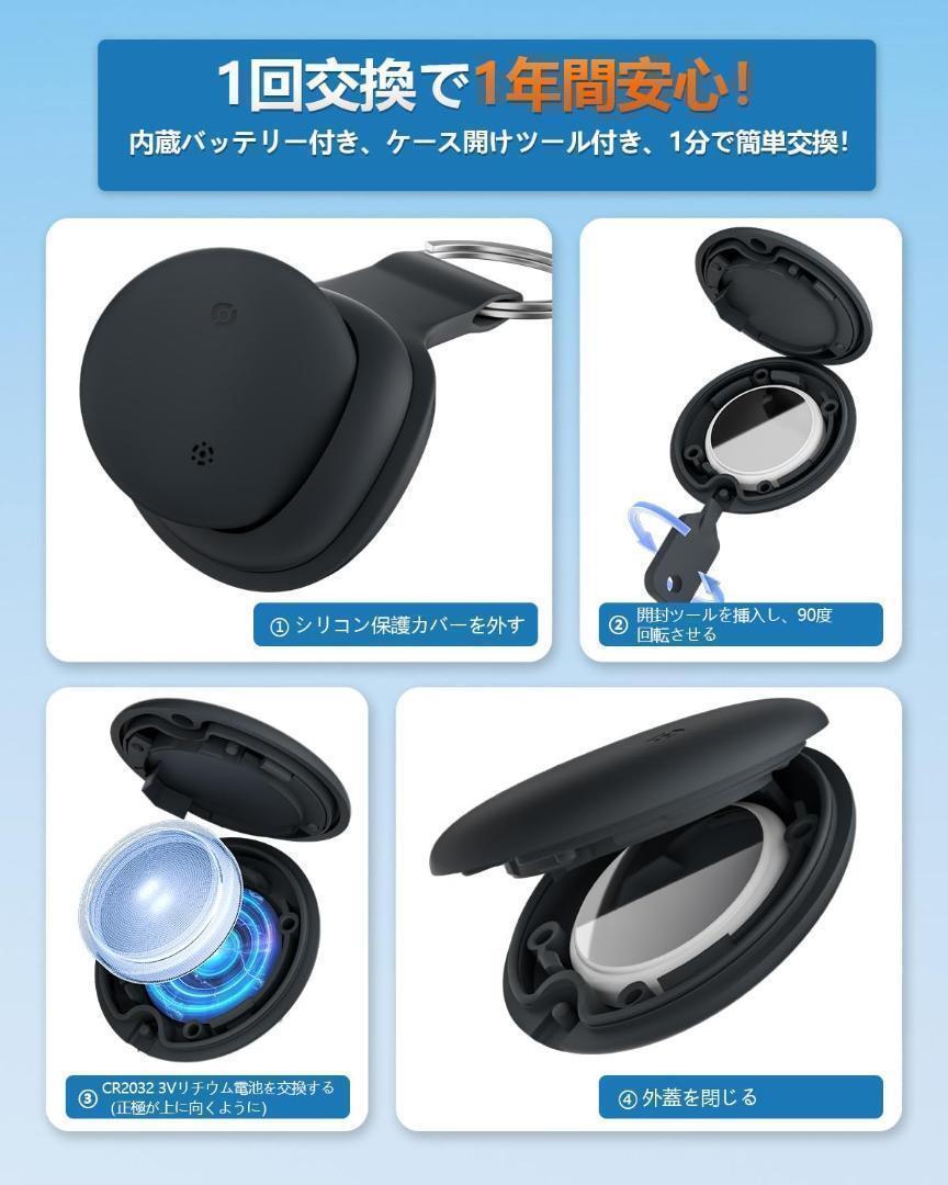 エアタグ(2個セット)紛失防止タグ 忘れ物防止 (Apple「探す」のみ対応 )IOS専用 超長持ち 子供/高齢者/ペット見守り 鍵/車両追跡 キーホルダー付きソフトシリコンカバー バッテリー内蔵