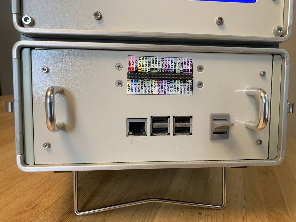 ・GPIOのピンはフラットケーブルで引き出して前面パネルに配置しピン名表示もしてあります。