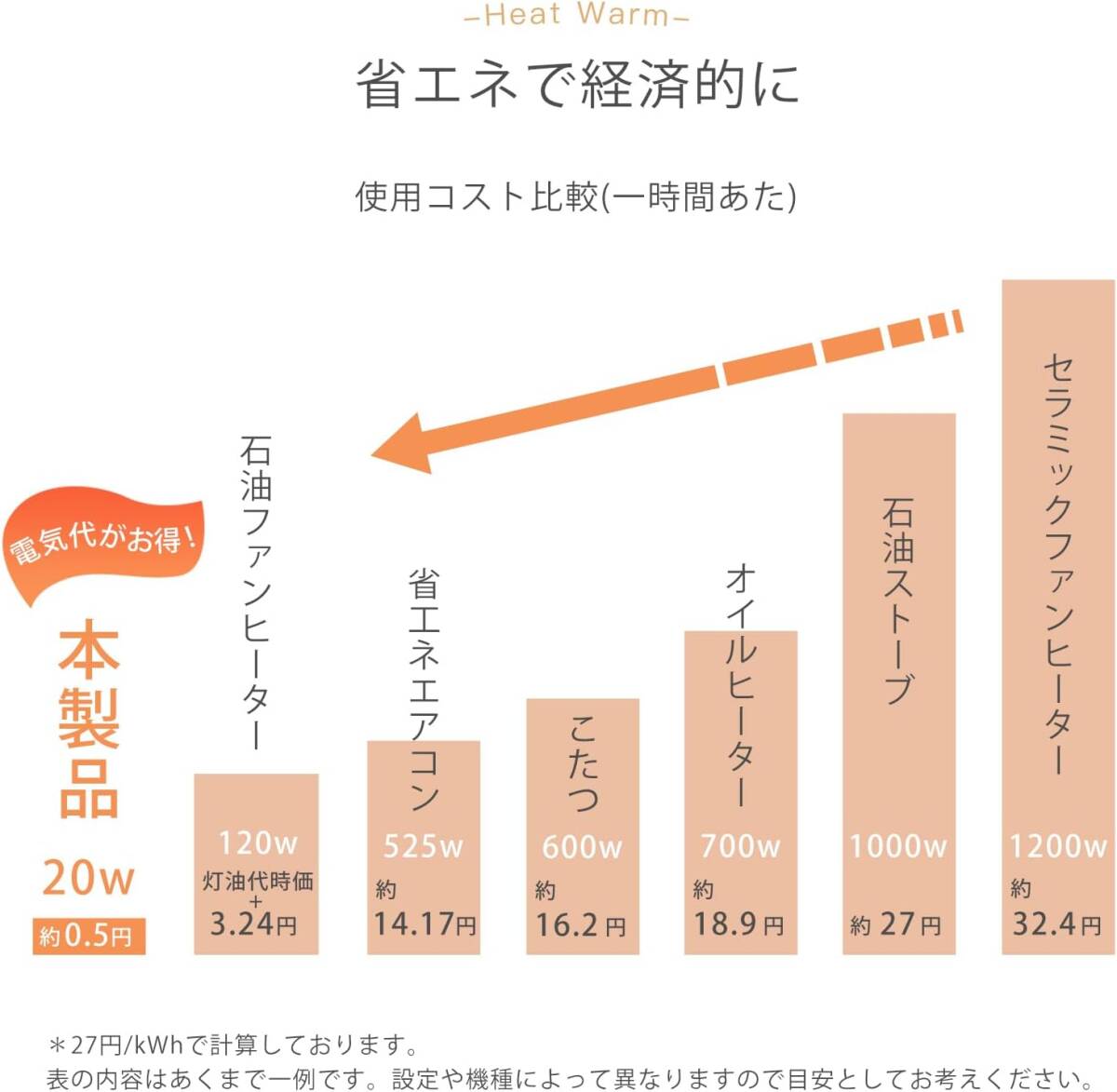 • 【使用時間】強モード(赤点灯):約3.5H(60~65℃)、中モード(青点灯):約5H(50~55℃)、弱モード(緑点灯):約6.5H(40~45℃)